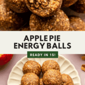 These Apple Pie Energy Balls pack classic apple pie flavors into a healthy snack! Enjoy them on the go, as a post-workout treat, or serve them for a fall dessert. Vegan, Gluten-Free and Nut-Free Options.