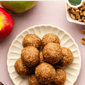 I usually have a container of these apple energy bites in my fridge or freezer all throughout fall. They’re a perfect snack to enjoy in between meals or after dinner. Usually, I’ll just snack on one or two on their own, but when I’m in the mood for an extra cozy treat, I’ll pair them with a Beet Latte or this Pumpkin Chai Bubble Tea.