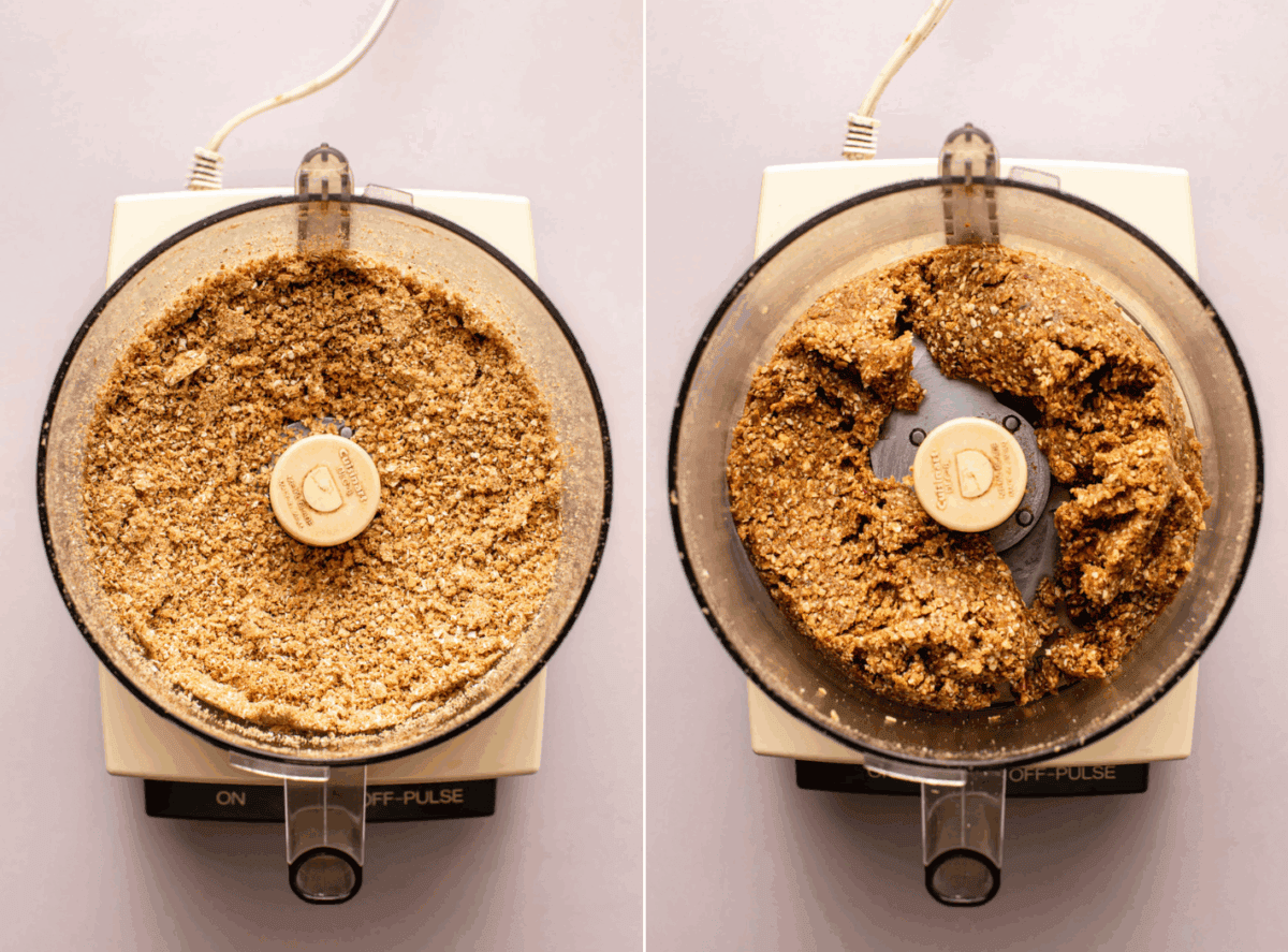 - Troubleshooting the dough texture: The dough is perfect when it feels slightly sticky and holds together when pinched. If it’s too dry and crumbly, mix in 1 to 2 teaspoons of water or a small drizzle of maple syrup to bring it back together. If it’s too wet, pulse in extra flax seed or oats until it sticks together.