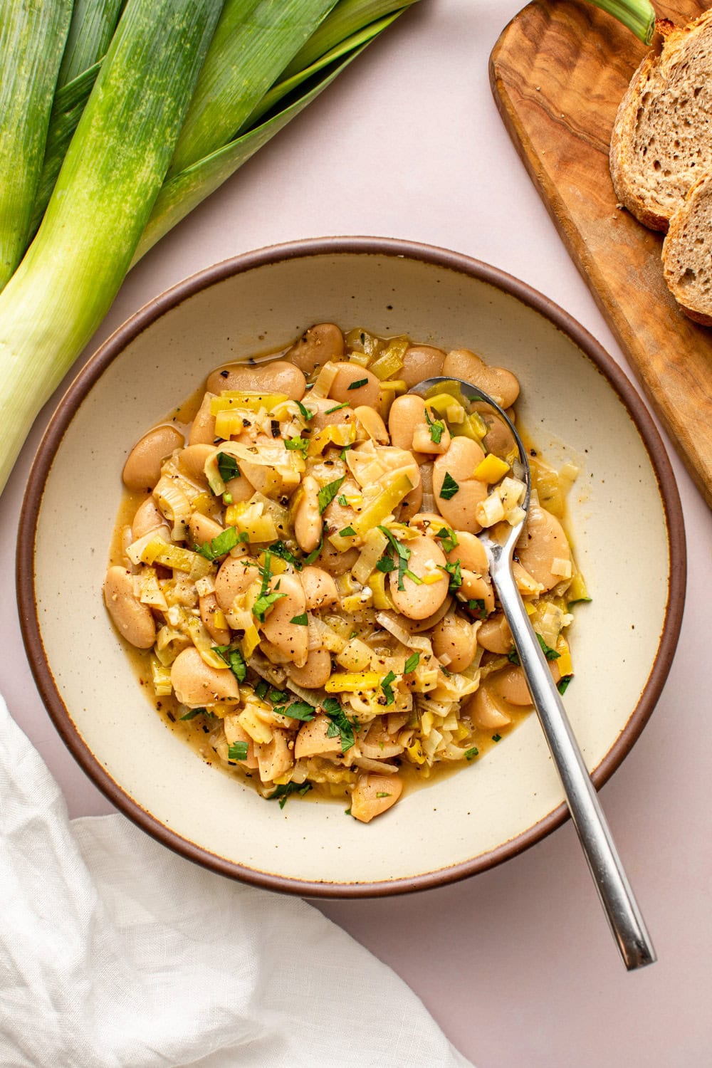 This Leek Butter Bean Stew is going down as one of my favorite simple yet comforting one-pot recipes. Just like my Cozy Vegan Stew with Mushrooms, I make it as soon as it gets a little chilly outside.