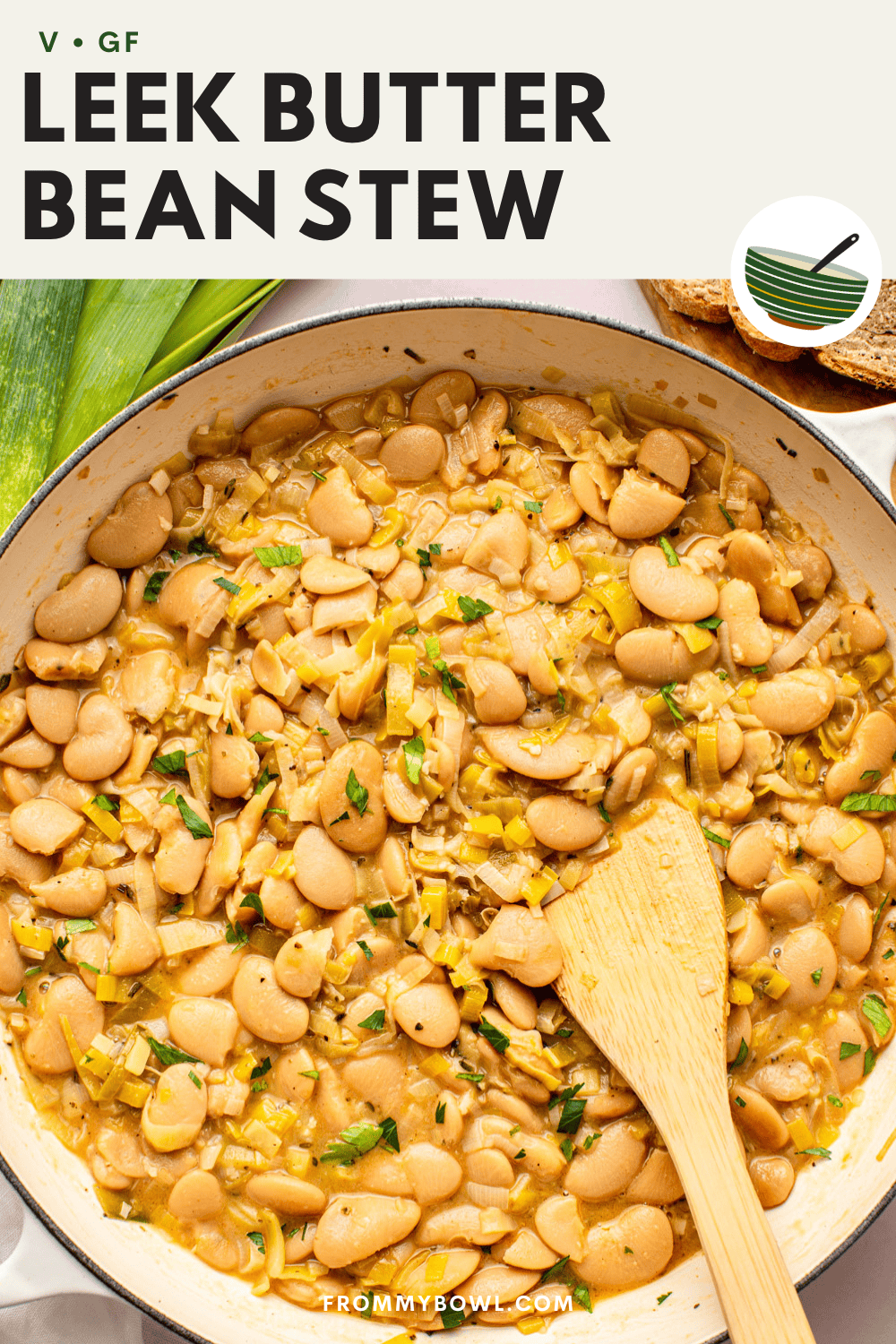 This Leek and Butter Bean Stew is a warm and hearty comfort food that simmers savory sautéed leeks, creamy butter beans, fresh herbs, broth, and plenty of garlic in one pot. Vegan and Gluten-Free.