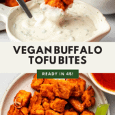 These crispy oven-baked Vegan Buffalo Tofu Bites are drenched in a spicy buffalo wing sauce and perfect as an appetizer or dinner protein!