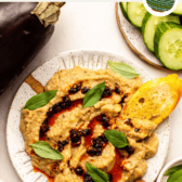 This Eggplant Dip is made with roasted eggplant and Asian-inspired flavors for a modern twist on the Mediterranean eggplant dip. Vegan, Gluten-Free.