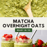 Start your day with these Matcha Overnight Oats! An energizing mix of matcha, oats, milk, and chia seeds transforms into the perfect make-ahead breakfast. Vegan, Gluten-Free Option.