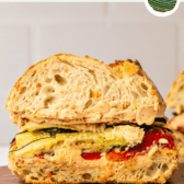 This Roasted Zucchini Sandwich is the best way to enjoy fresh summer zucchini. Made with roasted zucchini, red bell peppers, and sun-dried tomato whipped tofu on ciabatta bread, it’s so simple yet so flavorful. Vegan, Gluten-Free and Oil-Free options.