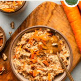 - Carrots: You know how a real carrot cake is loaded with freshly shredded carrots? Well, we’re doing the same in this dessert-for-breakfast recipe. This way, the oats have the same sweet flavor as the cake, plus some sneaky vitamins and minerals.
