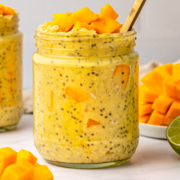 Mango Overnight Oats are a tropical twist on the classic overnight oats recipe. Oats are infused with fresh mango, coconut, lime and nutritious chia seeds. Plus, this recipe uses coconut milk for an extra creamy texture!