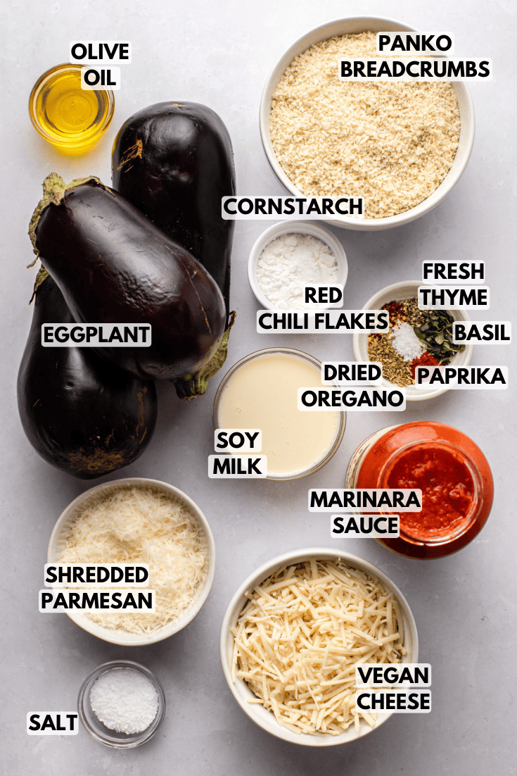 - Cornstarch: a thickening agent that yields a thick and sticky batter that will cling to the eggplant slices. Feel free to use arrowroot powder as a substitute.