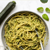 Just like my Pistachio Pesto Pasta, a plate of pasta covered in homemade pesto always makes everyday dinners feel a little more bougie. This recipe is particularly perfect for summer dinners because that’s when zucchini is at its peak. Pair each bowl with a crisp green salad, like this Everyday Kale Salad or this Swiss Chard Salad, and a side of this Italian Herbs & Cheese Bread for a well-rounded meal everyone will love.