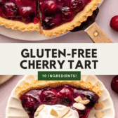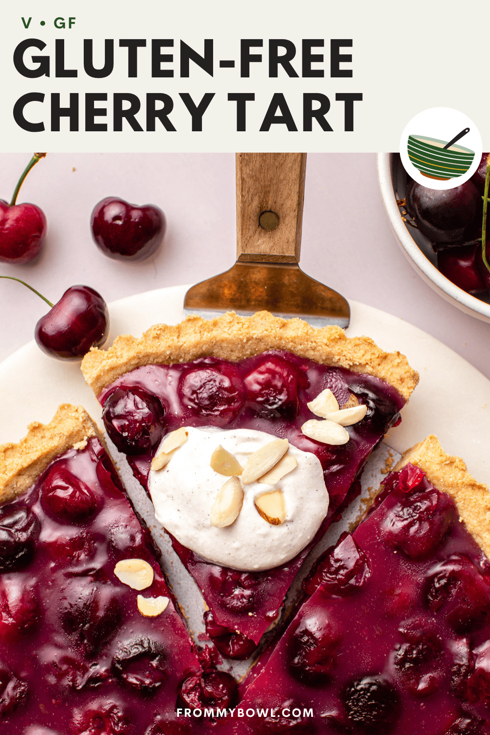 To make individual cherry tarts, press the crust into small tart pans or a regular muffin tin, or swap the crust for vegan and gluten-free tart shells instead. Bake, fill, and set the tartlets as normal.