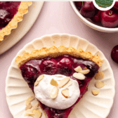 Just pour the cherry filling into the crust, let it set overnight, and you’re done! Every bite is bursting with sweet and sour cherries infused with just the right amount of almond and vanilla. Pass me a slice already!