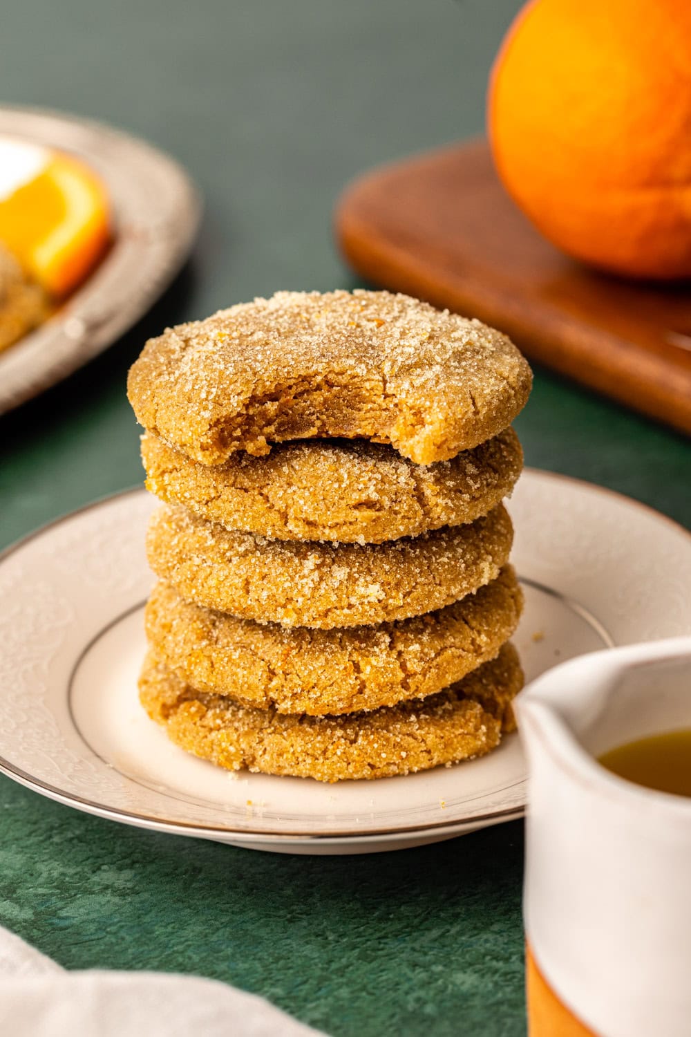 These soft and chewy Vegan Orange Olive Oil Cookies practically melt in your mouth. Like a sugar cookie and Orange Olive Oil Cake hybrid, they’re a handheld treat with bright orange flavors and an eye-catching sugar coating. One cookie is all you need to add a little sunshine to your day!