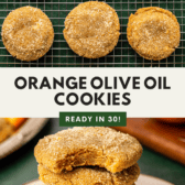 The unlikely combo of orange and olive oil is featured in these Orange Olive Oil Cookies. An out-of-the-ordinary yet oh-so-delicious pairing, they give these cookies a divine chewy texture, the best crispy edges, and bright citrus flavors you’ll crave. One cookie is never enough!