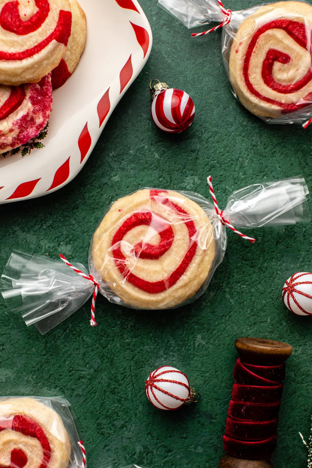 - Sprinkles: optional, but so festive! I like dunking the edges of my spiral cookies in clear crystal red sprinkles for a glittery presentation.