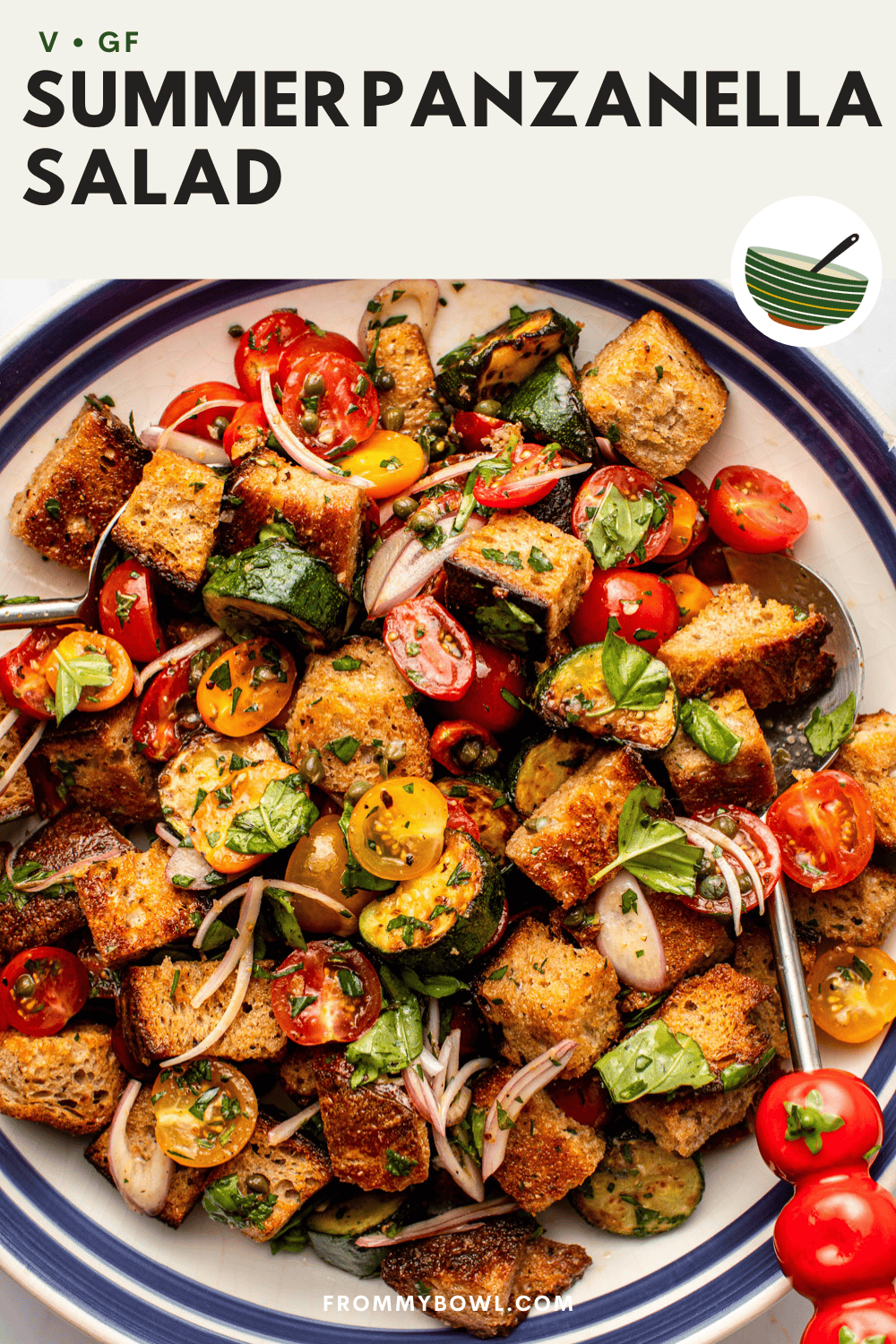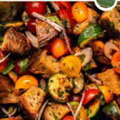 This Summer Panzanella Salad is a refreshing side or main dish that makes summer produce the star, combining juicy tomatoes, seared zucchini, and fresh herbs with crusty bread and a zesty tomato vinaigrette. Vegan, Gluten-Free Option.
