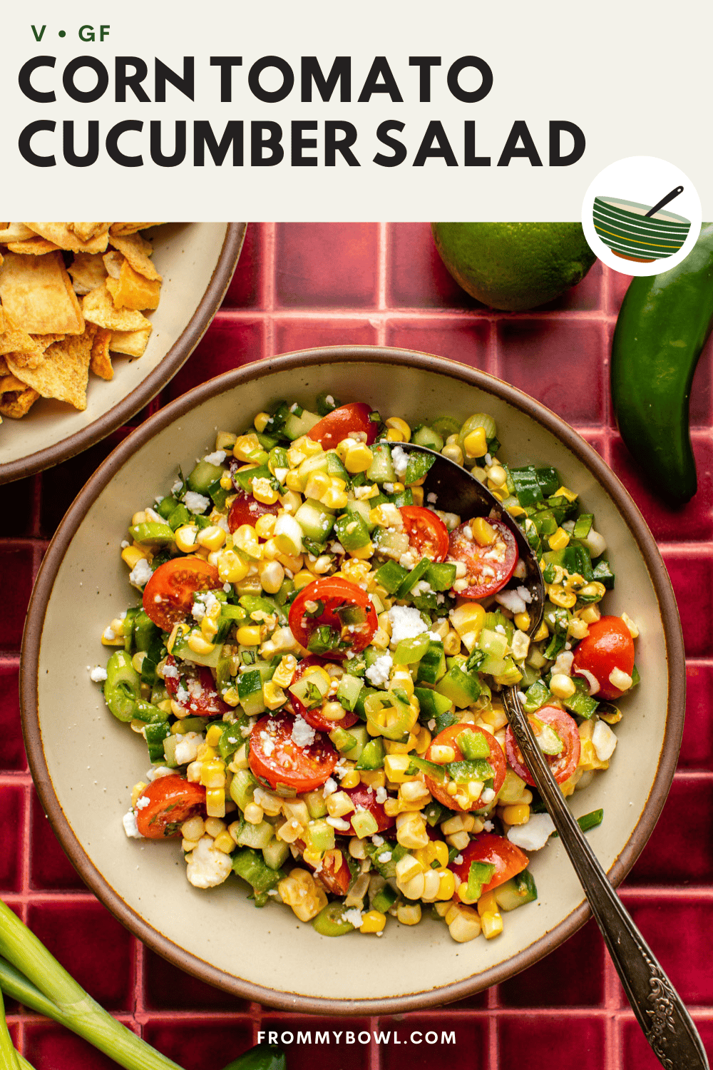 This Tomato Cucumber Corn Salad may look like your ordinary vegan corn salad, but it’s so much more than that! It’s loosely inspired by esquites, a popular Mexican street food that tosses grilled corn, mayo, lime, chili, and cheese together. Lucky for us, those same crave-worthy flavors are a perfect fit here!