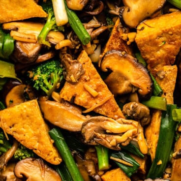 This Tofu Mushroom Stir Fry tosses crispy fried tofu and meaty mushrooms in a delicious stir fry sauce to give you an easy yet flavor-packed dinner for any night of the week! Vegan and Gluten-Free.
