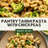 Tahini isn’t just for hummus! In this Pantry Tahini Pasta with Chickpeas, al dente pasta, blanched broccoli, and canned chickpeas are tossed in an ultra-creamy tahini and miso pasta sauce. A sprinkle of homemade gremolata on top is the perfect finishing touch, making this one of the best quick and easy pasta recipes to enjoy for a simple weeknight dinner.