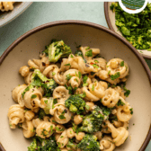 - Toss the pasta, broccoli, and chickpeas in the sauce to coat, then remove the skillet from the heat. Combine the gremolata ingredients in a small bowl.