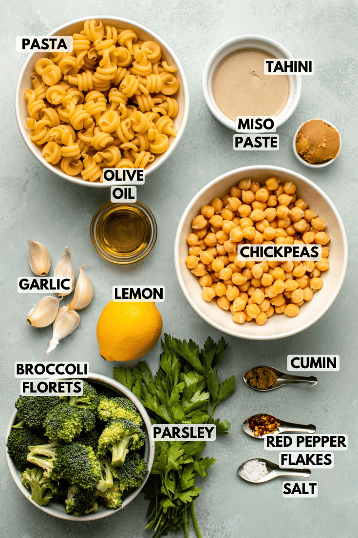 - Miso Paste: You can often find miso paste in the refrigerated section of your grocery store by the tofu, or at your local asian market. If you cannot find tahini, replace it with 1/2 teaspoon of kosher salt, adding more to taste as necessary. I’d also recommend adding 1-2 teaspoons of nutritional yeast to the sauce in step 2 to add some umami flavor to the pasta.