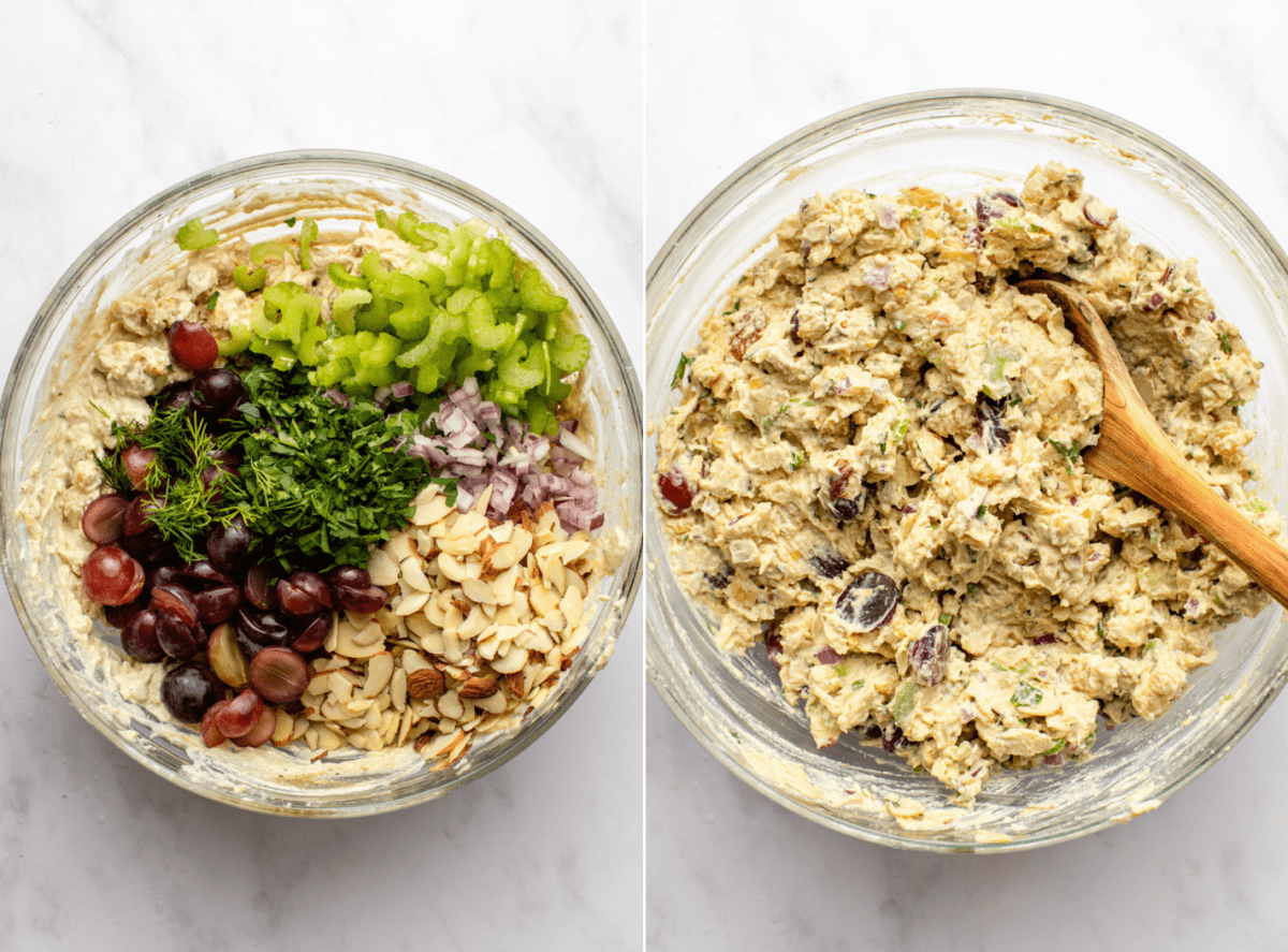 • Halve this recipe for a smaller prep. As written, this vegan chicken salad makes 6 servings, but can be easily adjusted to make less (or more).