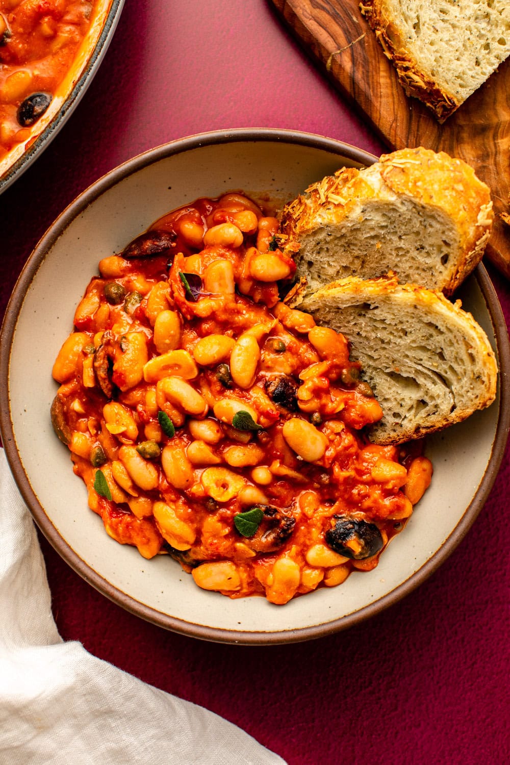 To me, no saucy white bean recipe is complete without crusty bread on the side. A big ‘ol toasted hunk of my Whole Wheat Bread is perfect for dunking and scooping up each bite and soaking up the leftover sauce at the bottom of the bowl.