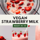 This 10-minute Vegan Strawberry Milk blends fresh strawberries, maple syrup, and non-dairy milk together to give you a sweet and creamy drink to sip on or use in your oatmeal or cereal. Vegan and Gluten-Free.
