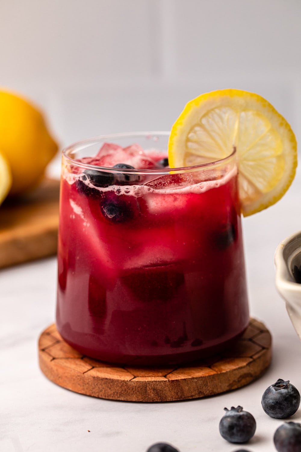 If you’re prepping this blueberry lemonade for a party or gathering, it can be made in advance but refrigerate the lemonade in an airtight jar or pitcher covered with plastic wrap without ice.
