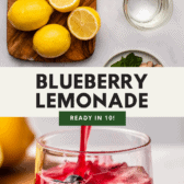 Make fresh Blueberry Lemonade at home with just 3 ingredients and a high speed blender. It’s sweet, tart, and as refreshing as it gets. You’ll be craving this summer twist on traditional lemonade all season long.